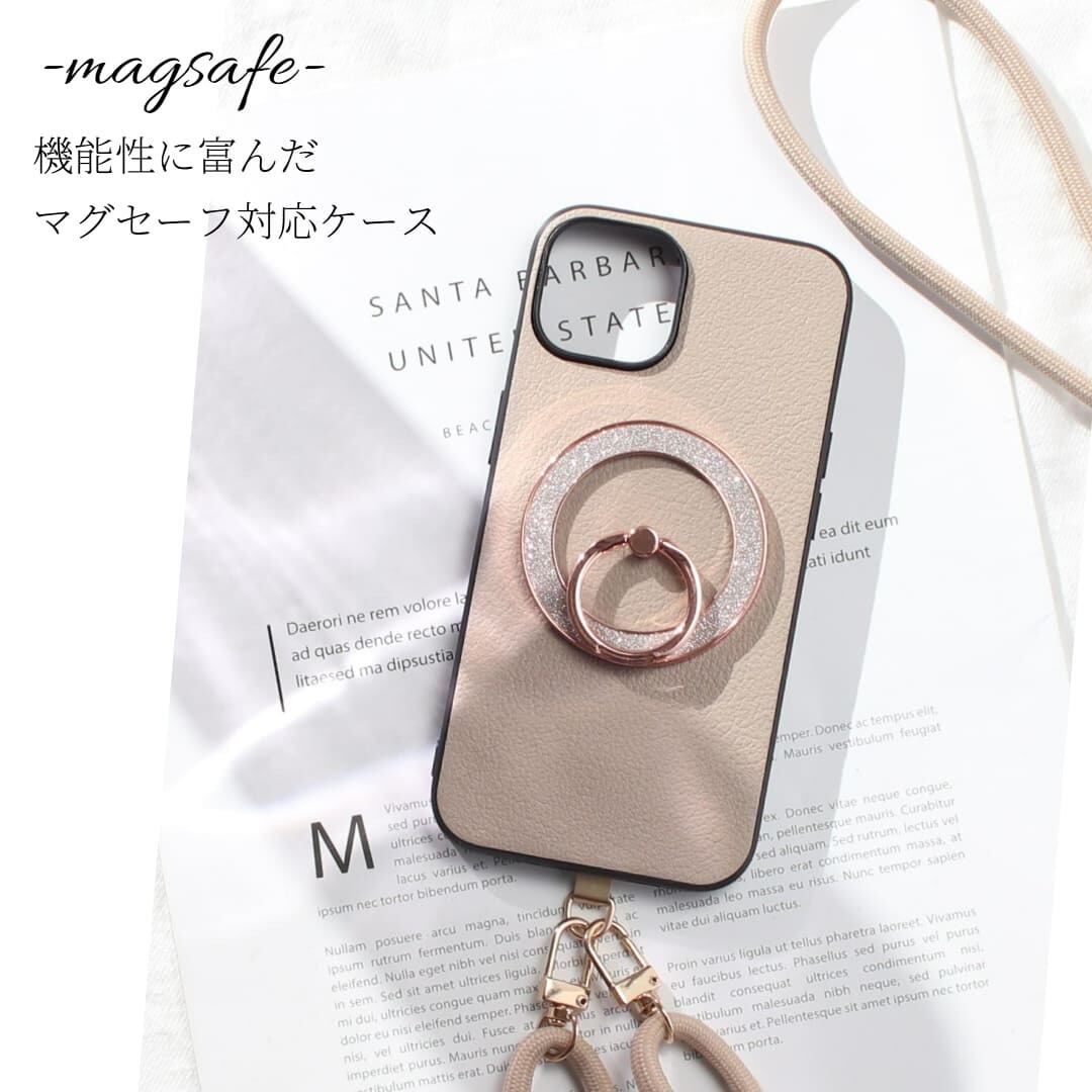 iphoneケース レザー iphone16 iphone15 iphone14 iphone13 リング付き ショルダー ストラップ 本革 16 15 14 13 13mini マグセーフ対応 magsafe対応 ゴートレザー 16pro 15pro 14pro リング ストラップ付き 肩掛け スタンド マグネット 16プロ 13ミニ メタリック 送料無料
