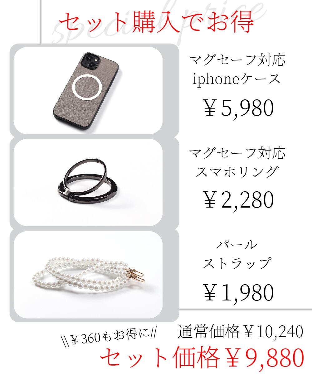 単体でマグセーフ対応iphoneケースとスマホリング・パールストラップを購入すると¥10,240ですが、