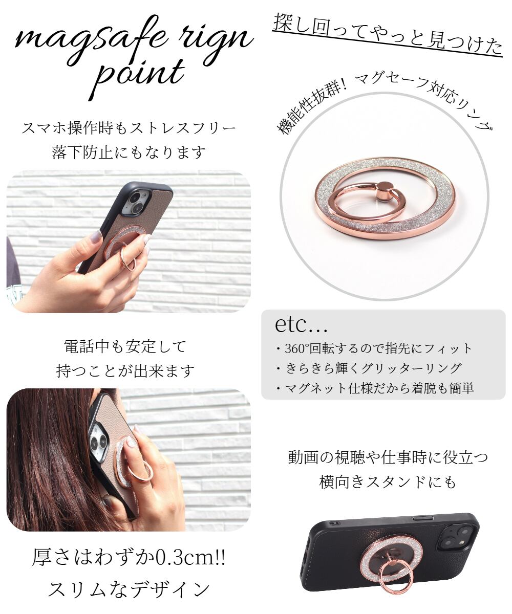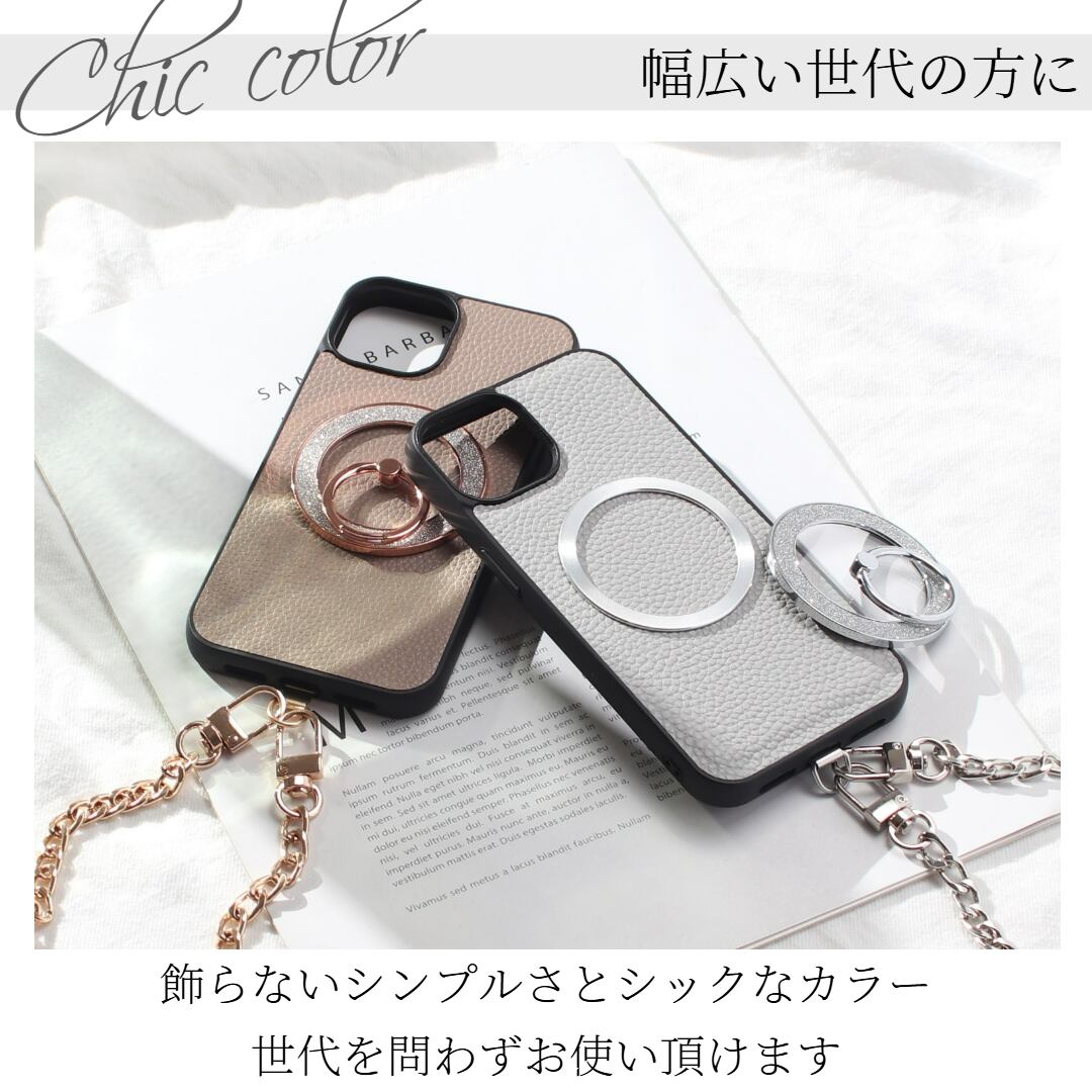 iphone ケース リング付き iphone16 iphone15 iphone14 iphone13 iphone12 pro SE レザー ショート チェーン ストラップ magsafe マグセーフ 16e 16pro 15pro 13mini スマホ リング アイフォン 16 15 14 13 12 se3 se2 ショートストラップ 大人可愛い メタリック 送料無料