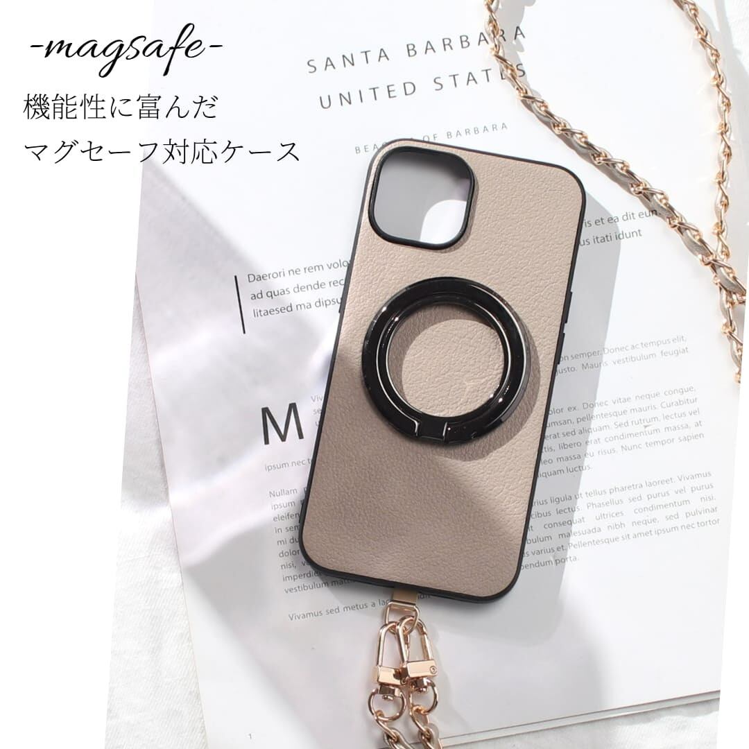 iphone ケース レザー リング付き iphone16 iphone15 iphone14 iphone13 magsafe対応 マグセーフ対応 チェーン ストラップ 本革 16 15 14 13 13mini ゴートレザー 16pro 15pro 14pro リング ショルダー ストラップ付き 肩掛け スタンド マグネット 16プロ 13ミニ 送料無料