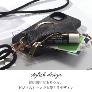 iphone ケース レザー iphone16 iphone15 iphone14 iphone13 小物入れ ショルダー ストラップ 本革 16 15 14 13 13mini マグセーフ対応 magsafe ゴートレザー 16pro 15pro 14pro 財布 カード収納 大容量 ストラップ付き 肩掛け マグネット 16プロ 13ミニ メタリック 送料無料