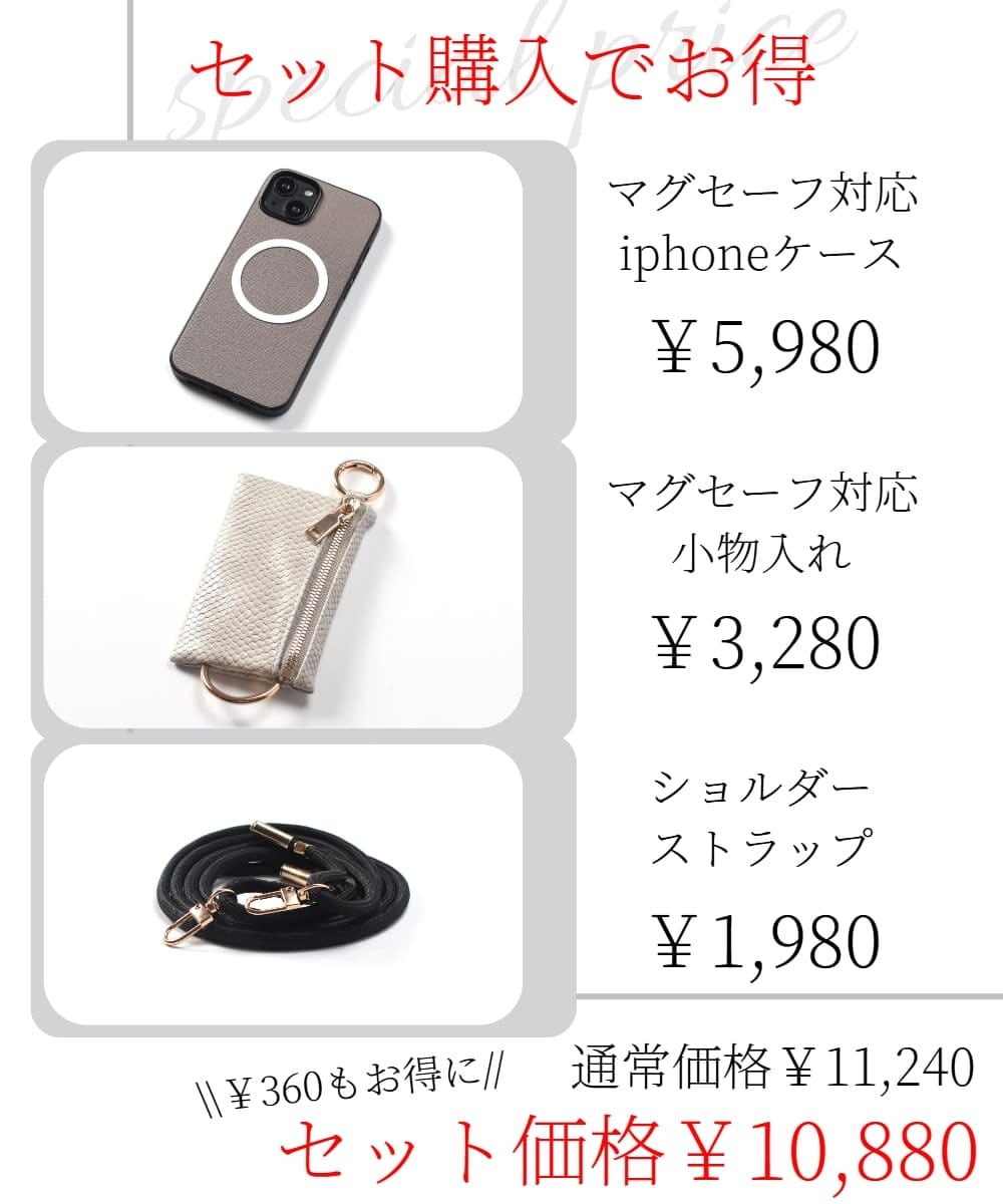 単体でマグセーフ対応iphoneケースと小物入れ・ショルダーストラップを購入すると¥11,240ですが、