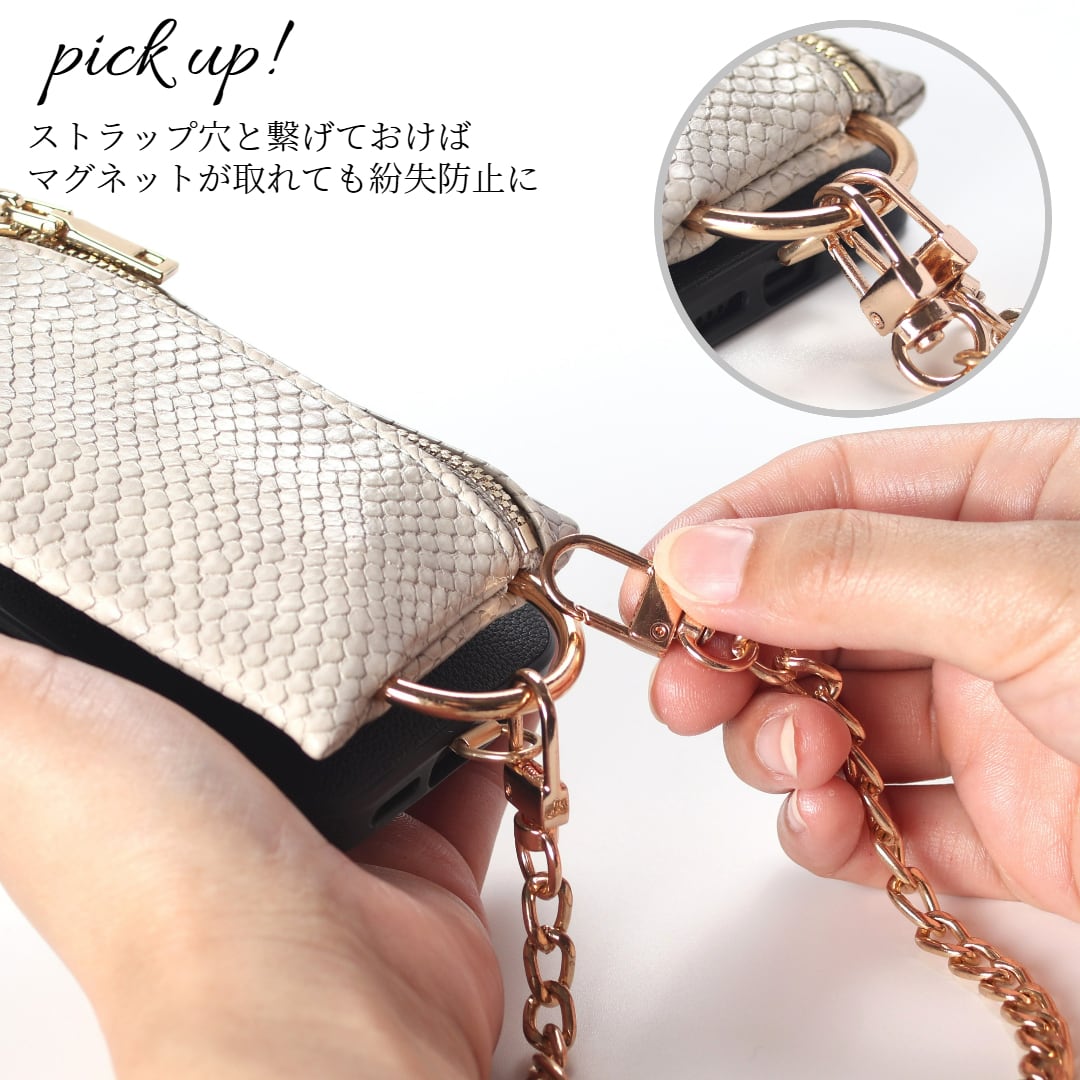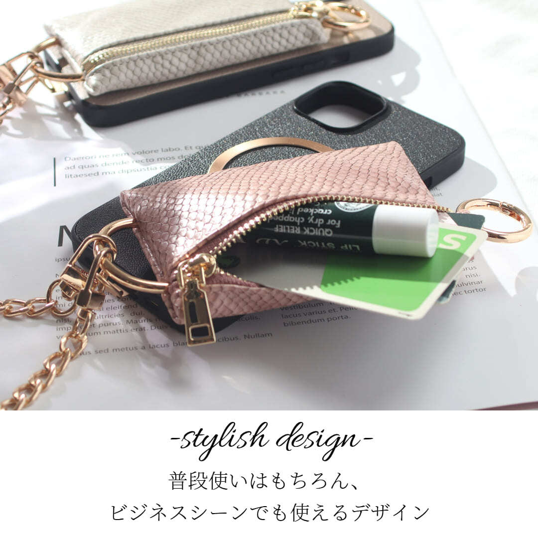 iphone ケース レザー 小銭入れ付き iphone16 iphone15 iphone14 iphone13 MagSafe マグセーフ カード収納 背面収納 チェーン ストラップ 本革 16 15 14 13 13mini マグセーフ対応 magsafe対応 16e 16pro 15pro ヘビ柄 ショート 財布 マグネット 大容量 メタリック 送料無料