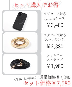 マグセーフ対応ブラックスマホリング&チショルダーストラップセット