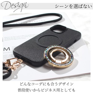 マグセーフ対応きらきらラメ入りスマホリング&チショルダーストラップセット