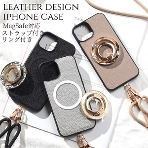 iphone ケース レザー リング付き iphone17 iphone16 iphone15 iphone14 iphone13 MagSafe マグセーフ ショルダー ストラップ アイフォン 17 16 15 14 13 12 SE リング 17pro 13mini se3 ストラップ付き 肩掛け スタンド 落下防止 調節可能 べっ甲 レディース 送料無料