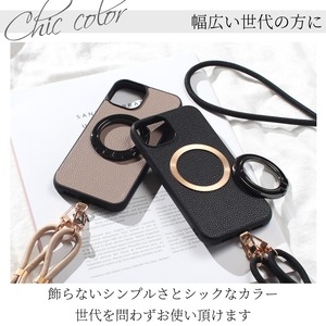 iphone ケース レザー リング付き iphone17 iphone16 iphone15 iphone14 iphone13 MagSafe マグセーフ ショルダー ストラップ アイフォン 17 16 15 14 13 12 SE リング 17pro 13mini se3 ストラップ付き 肩掛け スタンド 落下防止 調節可能 ブラック メタリック 送料無料