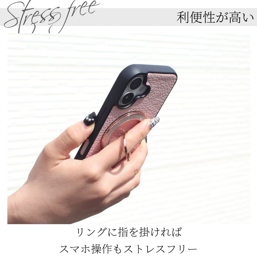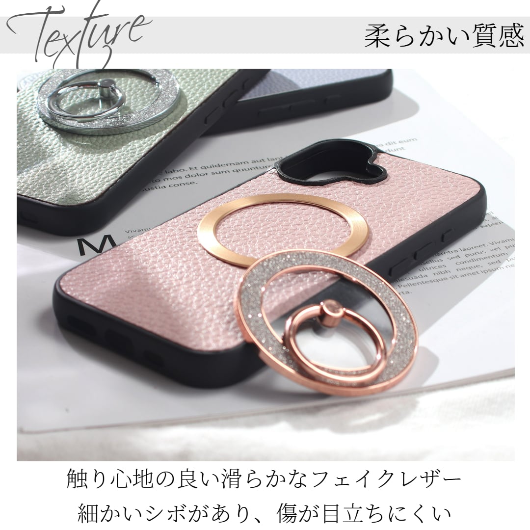 シックなレザーデザインマグセーフ対応スマホリングセット