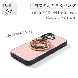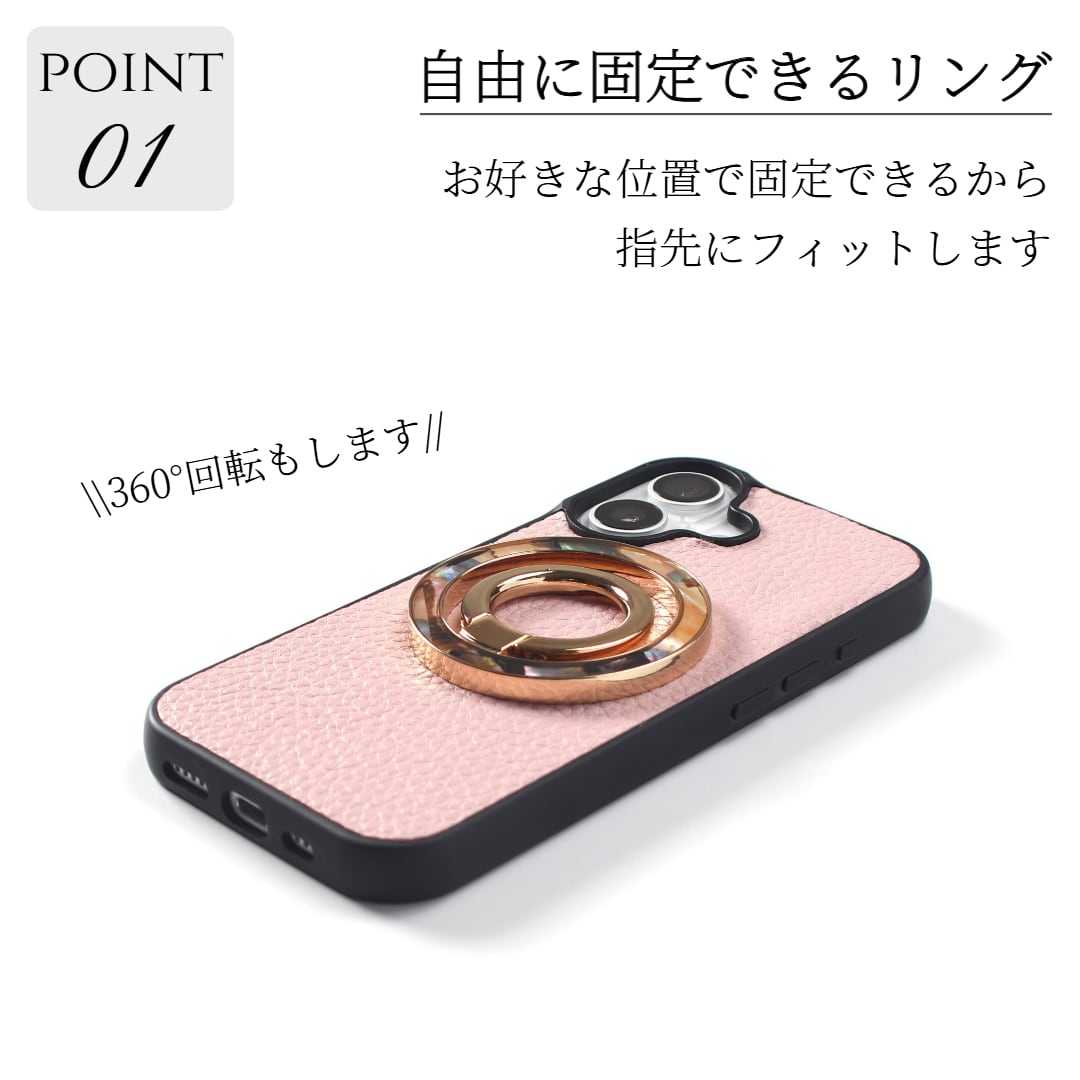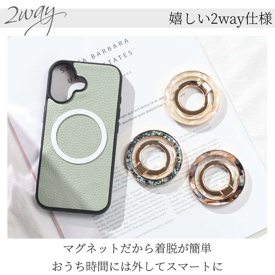 シックなレザーデザインマグセーフ対応スマホリングセット