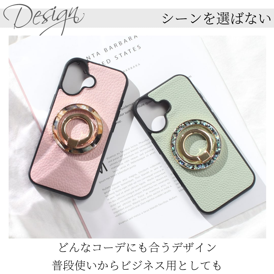 iphone ケース リング付き レザー iphone17 iphone16 iphone15 iphone14 iphone13 pro SE MagSafe マグセーフ マグネット べっ甲 シェル くすみカラー 可愛い アイフォン 17 16 15 14 13 se3 magsafe対応 スマホリング スタンド 17pro 16pro 15pro 13mini 落下防止 送料無料