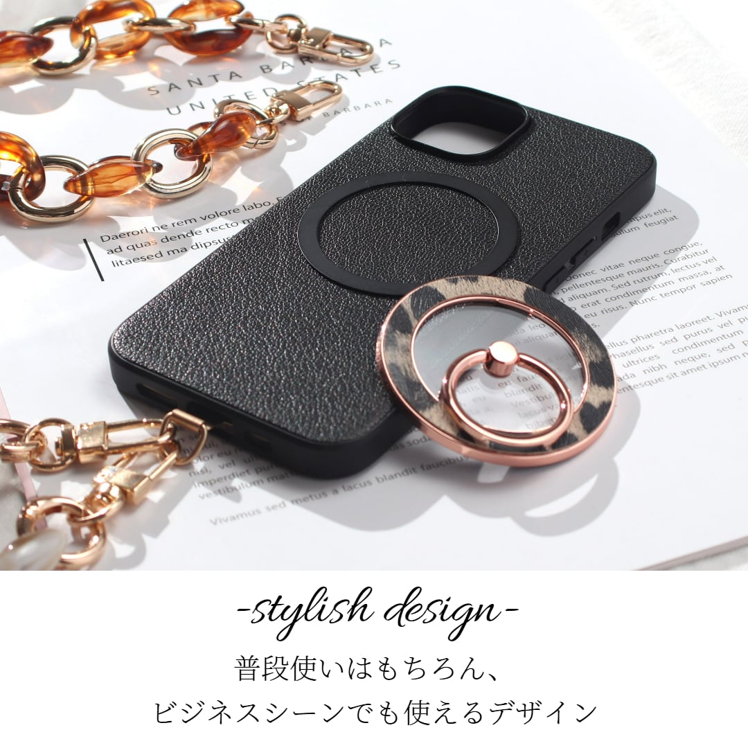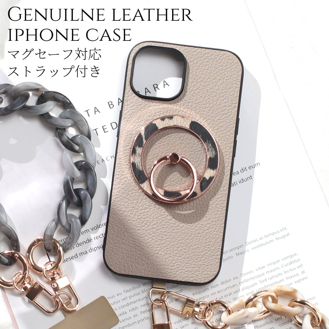 iphone ケース レザー リング付き iphone17 iphone16 iphone15 iphone14 MagSafe ショート ストラップ 本革 アイフォン 17 16 15 14 13 13mini magsafe対応 ゴートレザー マグセーフ 17e 16pro 15pro リング ヒョウ柄 レオパード スリム ストラップ付き スタンド 送料無料