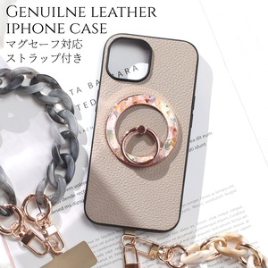 iphone ケース レザー リング付き iphone17 iphone16 iphone15 iphone14 MagSafe ショート ストラップ 本革 アイフォン 17 16 15 14 13 13mini magsafe対応 ゴートレザー マグセーフ 17e 16pro 15pro リング 花柄 ストラップ付き スタンド マグネット 大人可愛い 送料無料