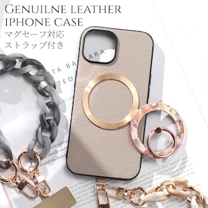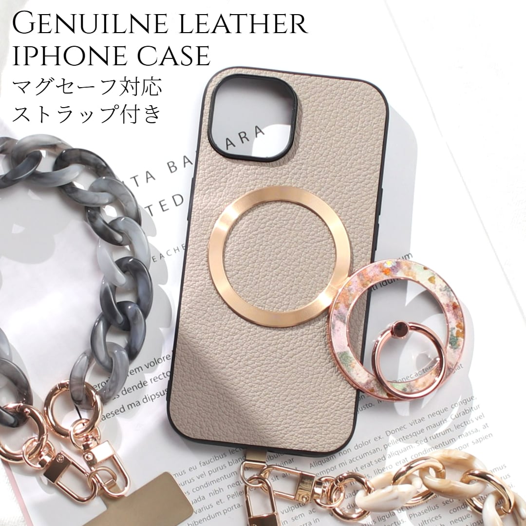 iphone ケース レザー リング付き iphone17 iphone16 iphone15 iphone14 MagSafe ショート ストラップ 本革 アイフォン 17 16 15 14 13 13mini magsafe対応 ゴートレザー マグセーフ 17e 16pro 15pro リング 花柄 ストラップ付き スタンド マグネット メタリック 送料無料