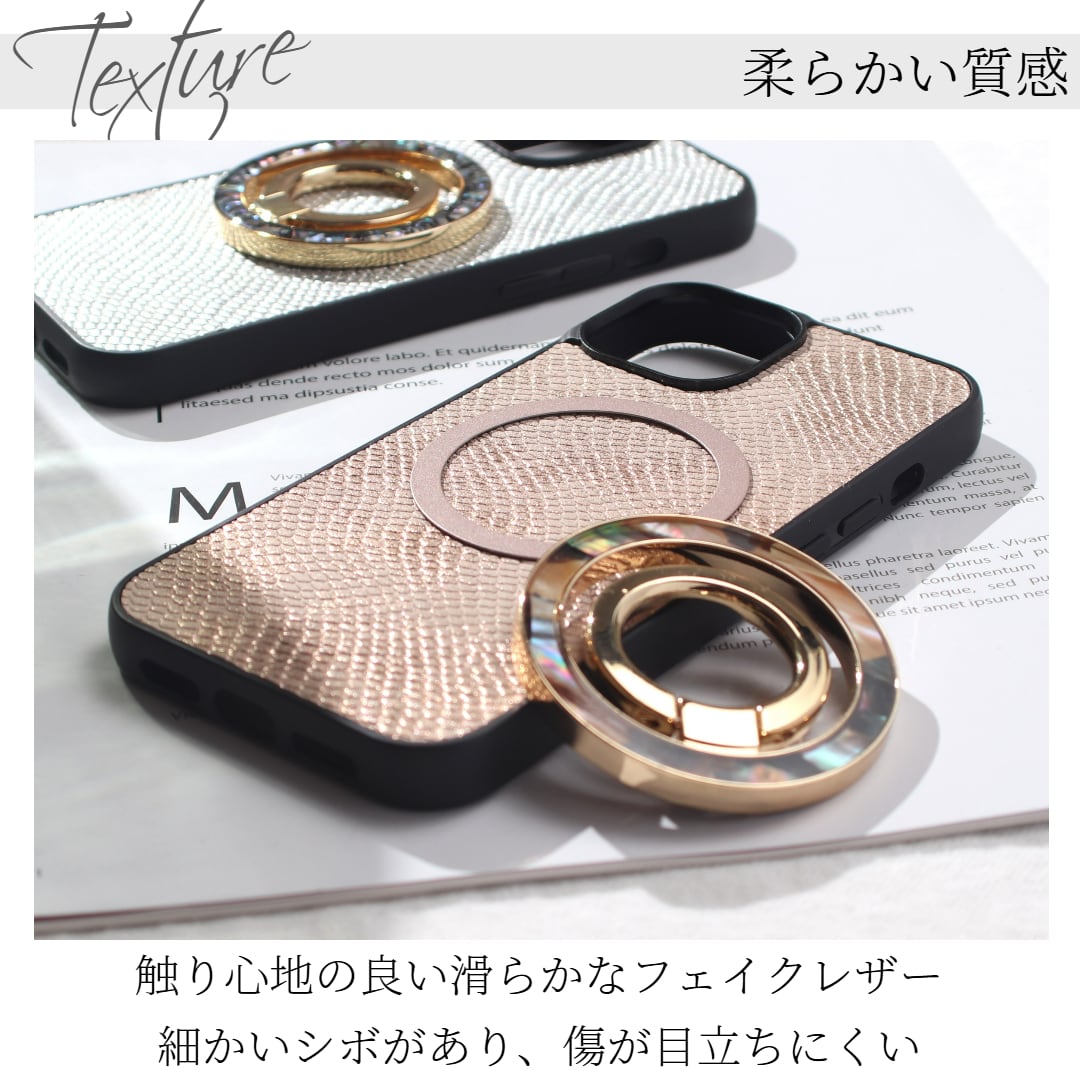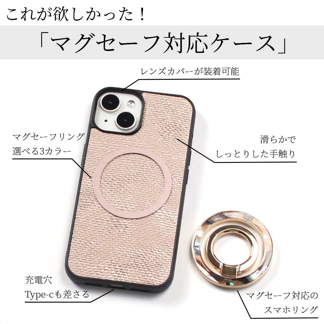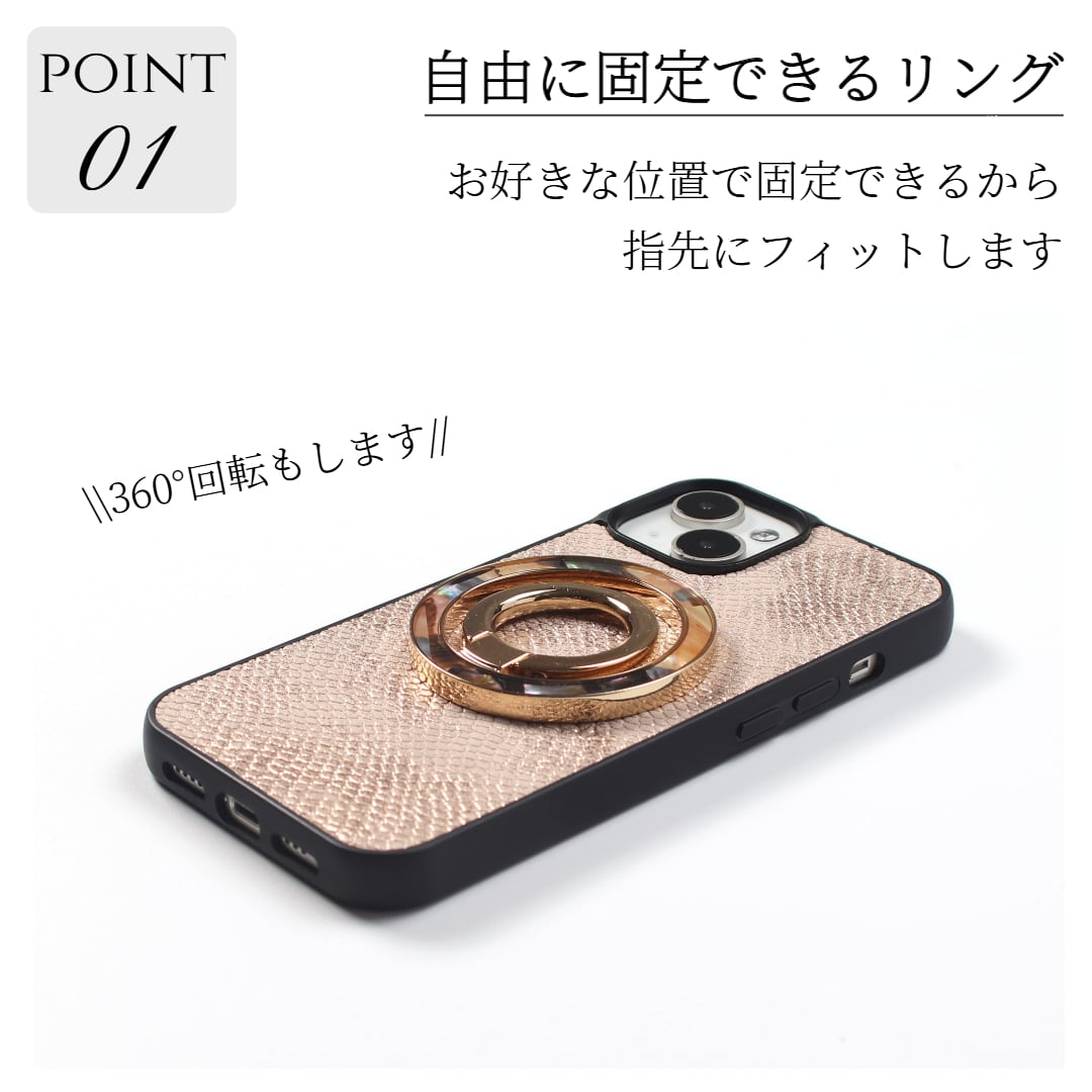 iphone ケース レザー リング付き iphone17 iphone16 iphone15 iphone14 iphone13 MagSafe マグセーフ対応 マグネット 大人可愛い ヘビ柄 きらきら アイフォン 17 16 15 14 13 12 se3 スマホリング スリム スタンド 17e 17pro 16pro 15pro 13mini べっ甲 シェル 送料無料