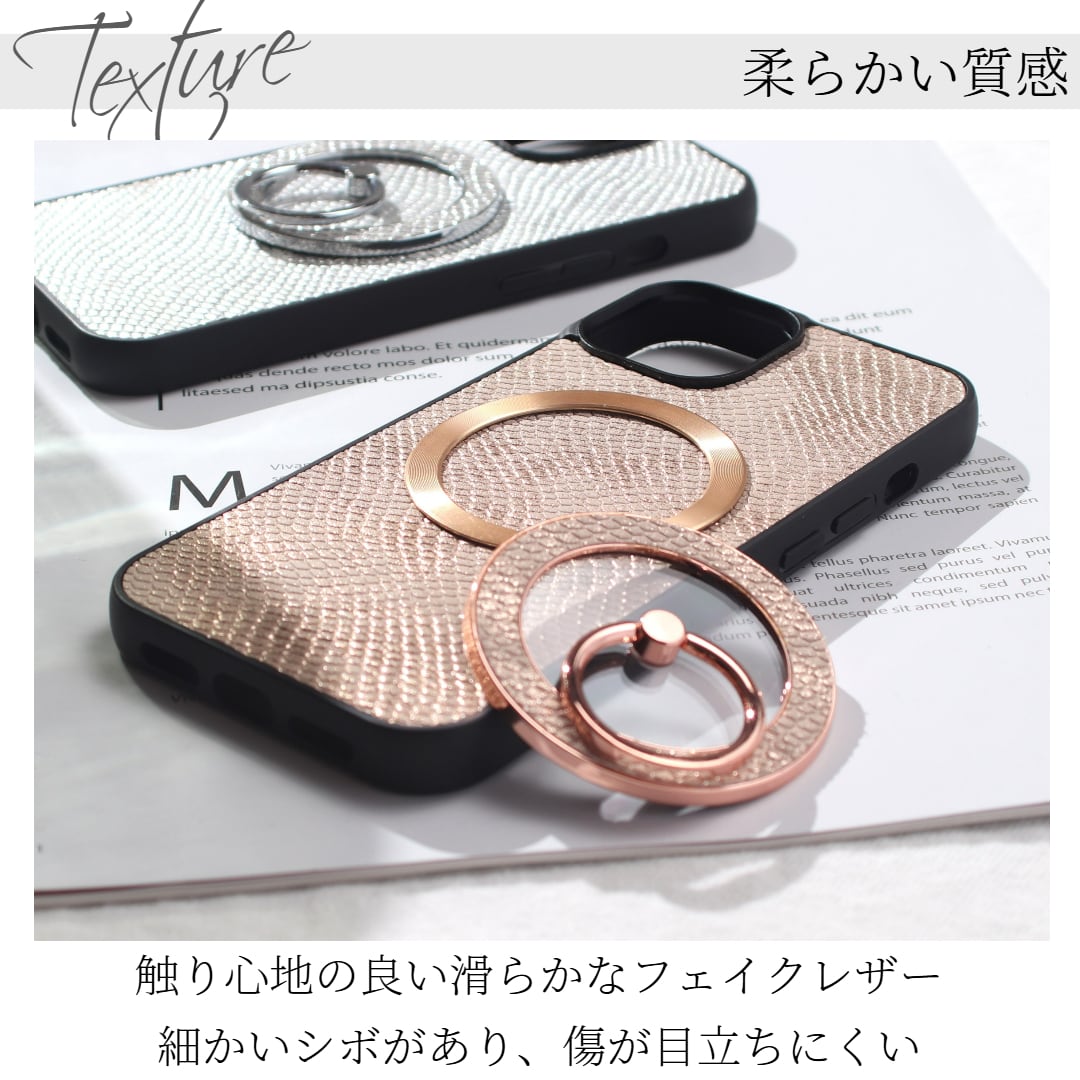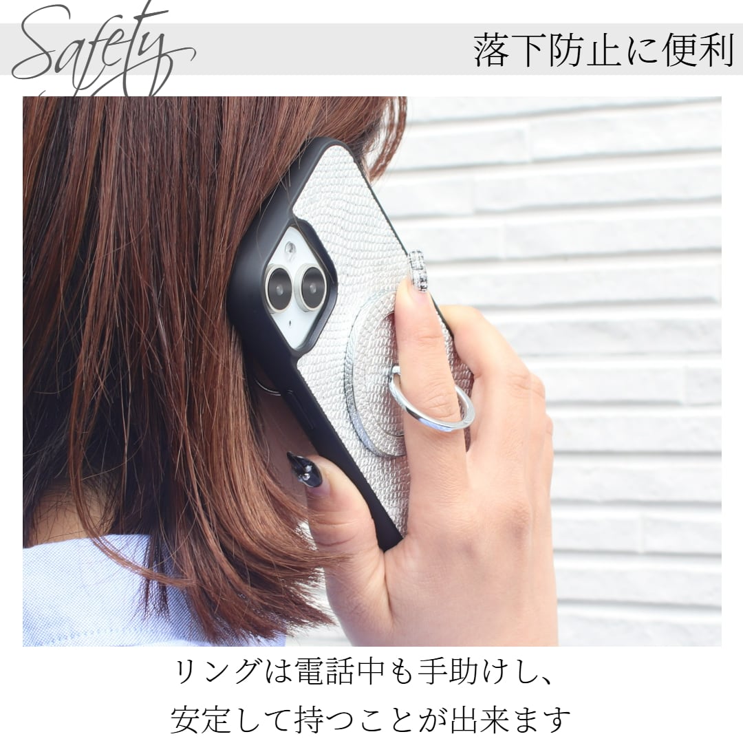 iphone ケース レザー リング付き iphone17 iphone16 iphone15 iphone14 iphone13 MagSafe マグセーフ対応 マグネット 大人可愛い ヘビ柄 きらきら アイフォン 17 16 15 14 13 12 se3 スマホリング スタンド スリム 17pro 16pro 15pro 13mini レディース メタリック 送料無料