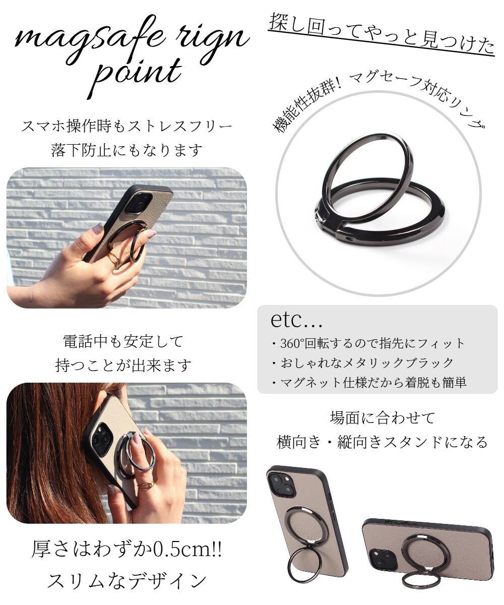 iphone ケース レザー リング付き iphone17 iphone16 iphone15 iphone14 MagSafe ショート ストラップ 本革 アイフォン 17 16 15 14 13 13mini magsafe対応 ゴートレザー マグセーフ 17e 16pro 15pro リング ブラック スリム ストラップ付き スタンド メタリック 送料無料