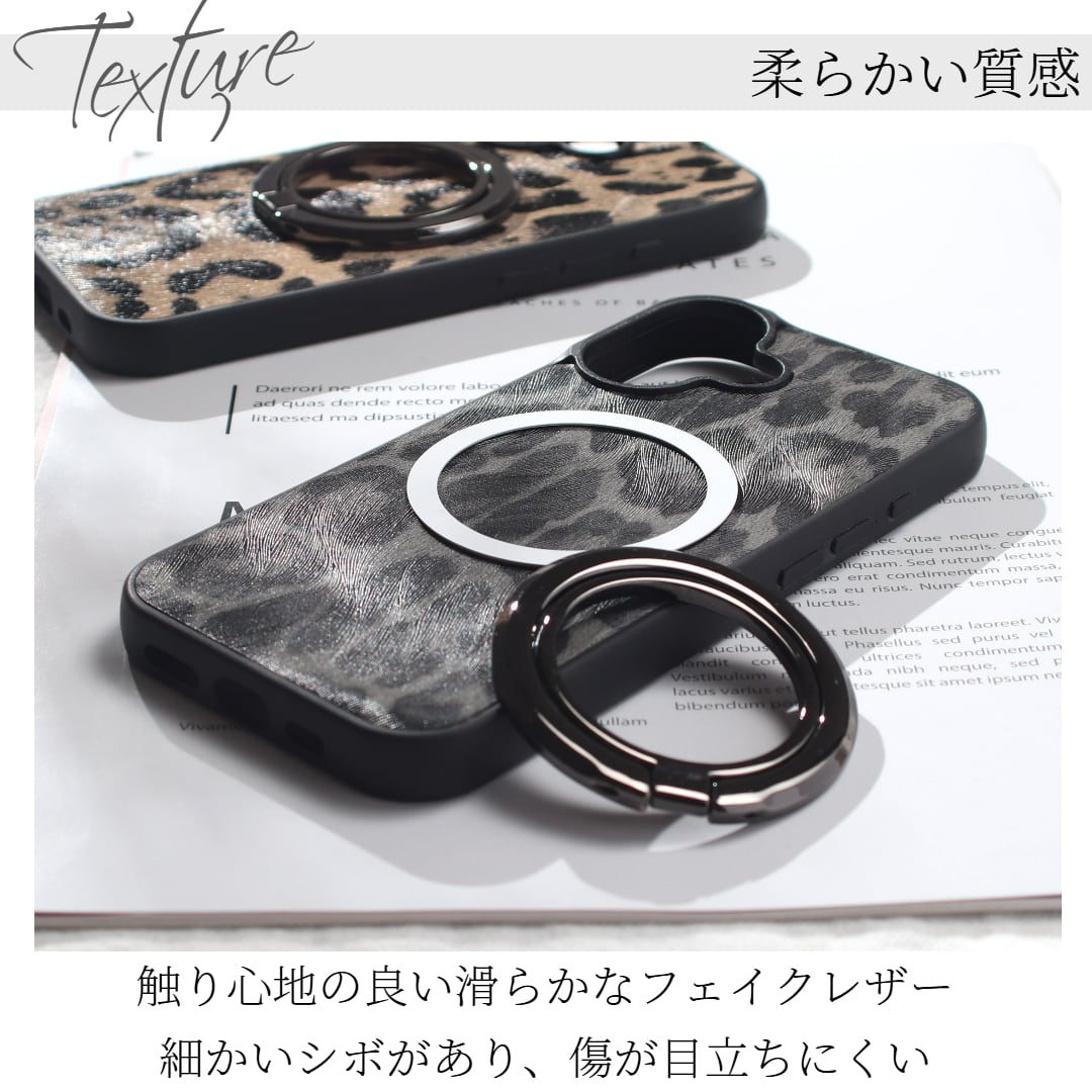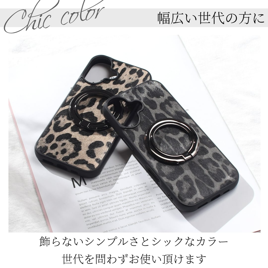 iphone ケース レザー リング付き iphone17 iphone16 iphone15 iphone14 iphone13 MagSafe マグセーフ スマホリング ヒョウ柄 レオパード アイフォン 17 16 15 14 13 12 se3 magsafe対応 マグネット スリム スタンド 17pro 16pro 15pro 13mini シンプル ブラック 送料無料