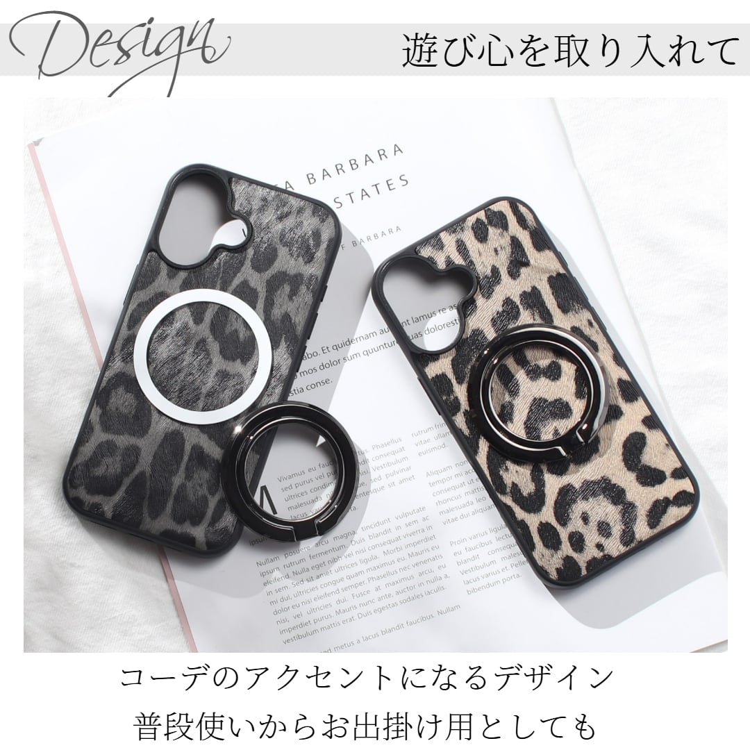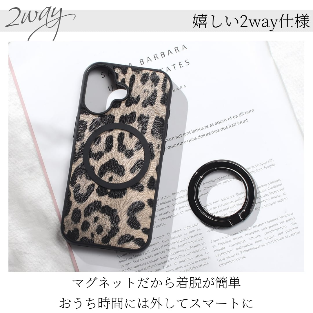 おしゃれなレオパード柄マグセーフ対応スマホリングセット