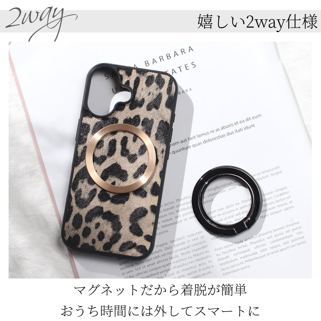 おしゃれなレオパード柄マグセーフ対応スマホリングセット