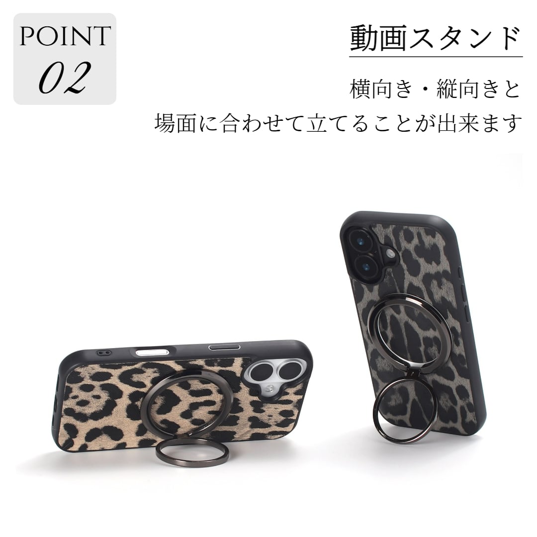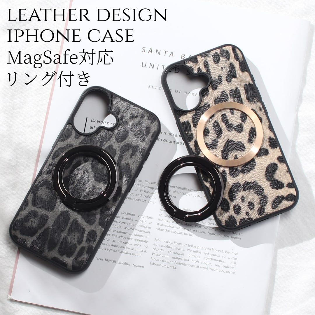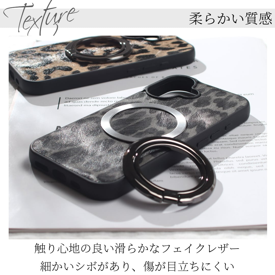 iphone ケース レザー リング付き iphone17 iphone16 iphone15 iphone14 iphone13 MagSafe マグセーフ スマホリング ヒョウ柄 レオパード アイフォン 17 16 15 14 13 12 se3 magsafe対応 マグネット スリム スタンド 17pro 16pro 15pro 13mini きらきら ブラック 送料無料