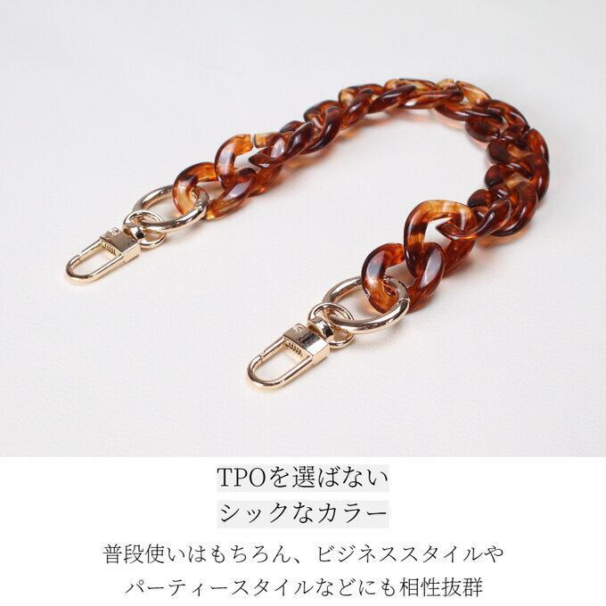 ショートストラップは、軽くてラグジュアリーな印象のアクリル樹脂を採用