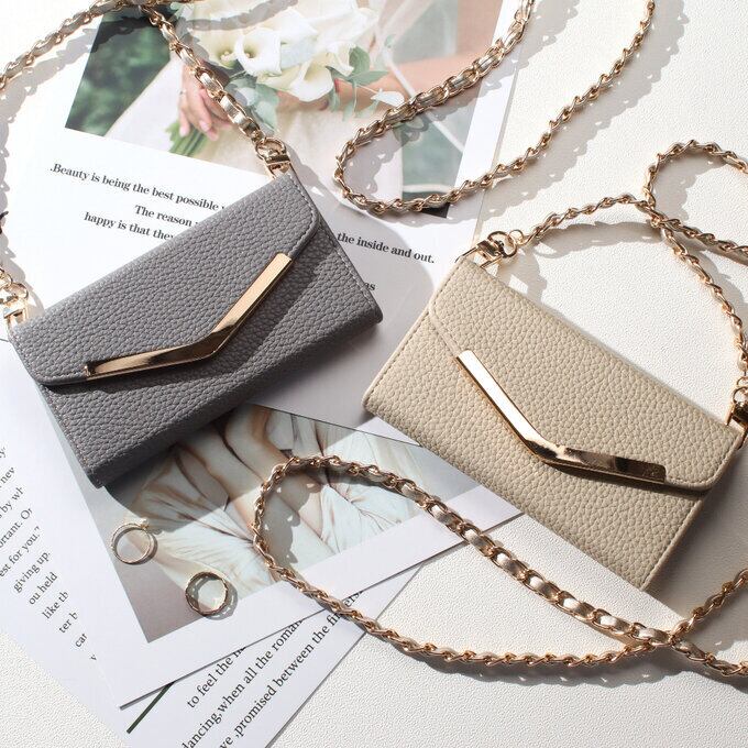 大人可愛い手帳型iphoneケースとチェーンストラップのお得なセットアイテム
