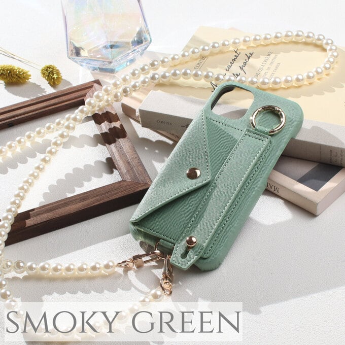 働く女性に欠かせない機能を充実させた大人可愛いバンド付きiphoneケースとパールストラップのお得なセットアイテム